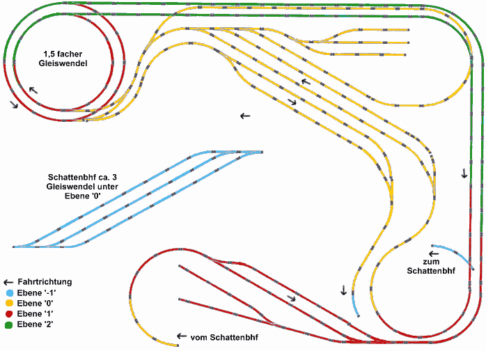 Ich habe heute (Okt. 2004) meinen alten Gleisplan über den Haufen geschmissen. Dieser Plan ist mir heute beim Spazierengehen in den Sinn gekommen. Ich habe mit