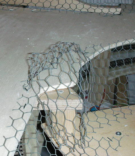 Hier eine Detailaufnahme. Ich habe mit dem Hasendraht nicht nur die Ebenen verbunden, sondern auch noch kleine Erhebungen oder Vertiefungen eingebaut.